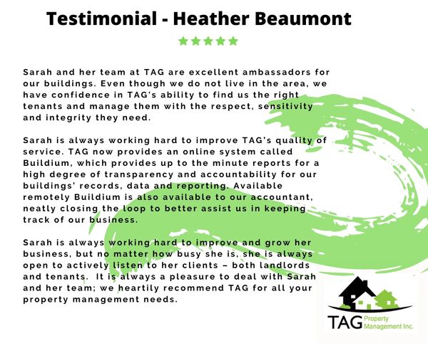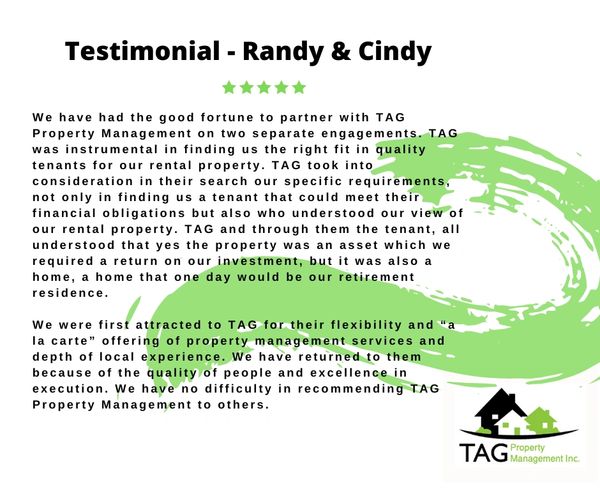 "I have been a client of TAG Property Management since before there was a TAG. As the original, and longest served client of this property management company, I have witnessed incredible growth in both the services they offer and the skills they provide. But through it all, TAG property management has been committed to providing quality customer service for both myself and my tenants.